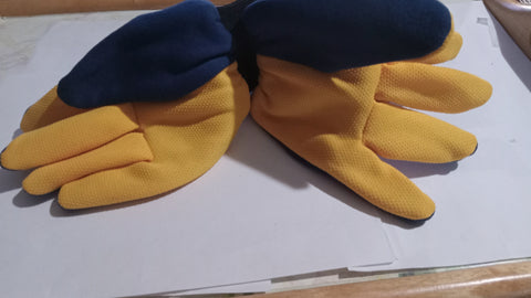 Blue back with yellow palm.