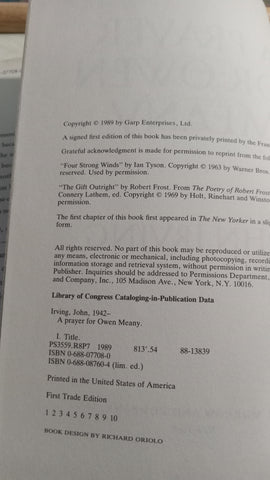 John Irving A Prayer For Owen Meany First Trade Edition Hardcover Book